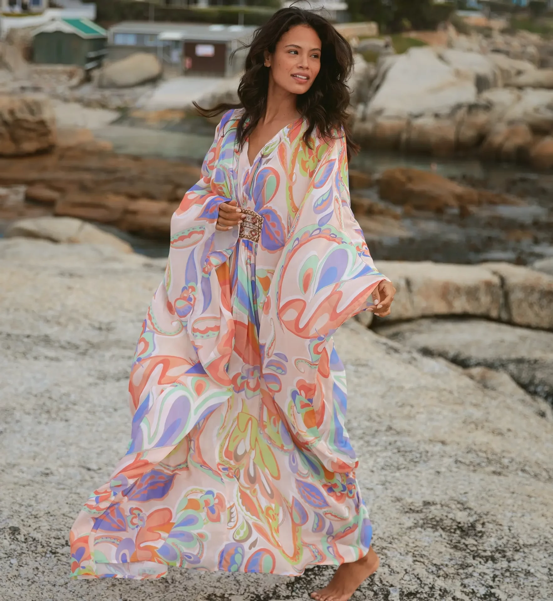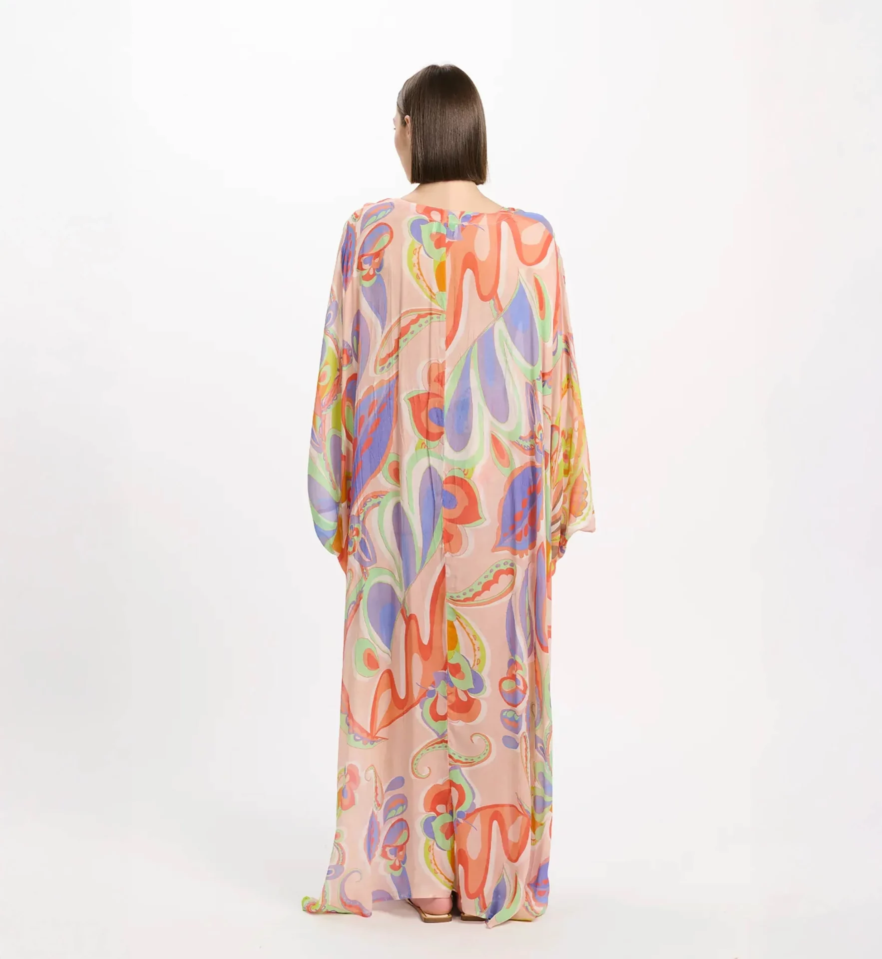 Varda Long Caftan enhances your silhouette with: