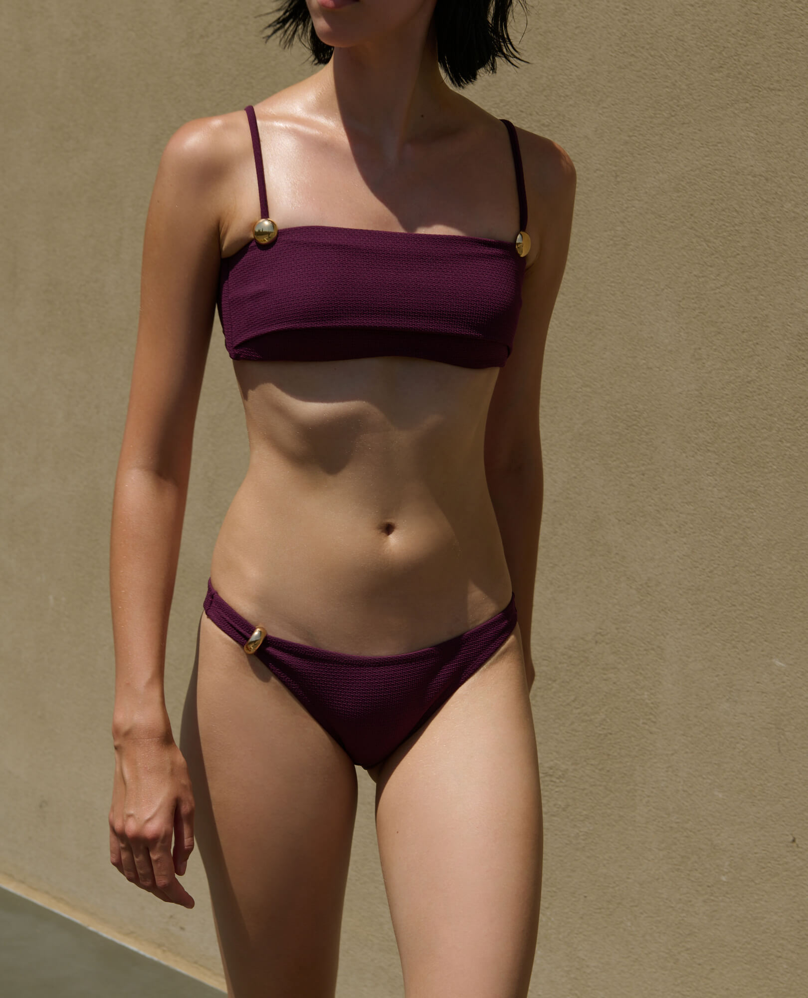 Zenia Top: A minimal bikini top elevated with statement detailing. Lightly padded bandeau with back closure. Fully lined.